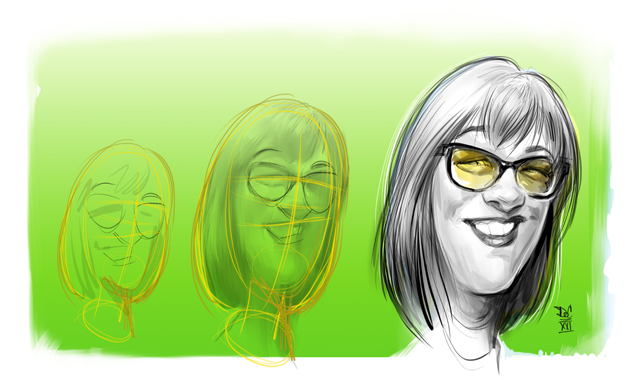 We start with a sketch of the people or subject matter and send you a draft of the caricature illustration for approval and feedback.